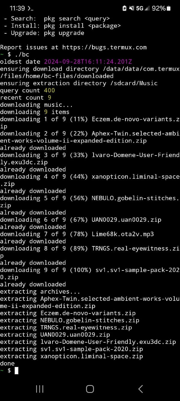 I knew that Bandcamp exposed public APIs to get purchase data. I also run Termux on Android, so I know that I could get a Linux-based solution to work.